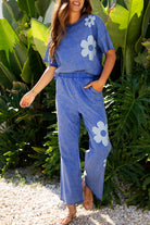 Lilac Floral Patch Exposed Seam Raw Edge Pants Set