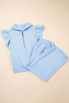Pink Textured Ruffled Sleeve Zipped Top and Wide Leg Pants Set