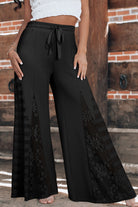 Smoke Gray Boho Lace Patchwork Wide Leg High Waist Pants