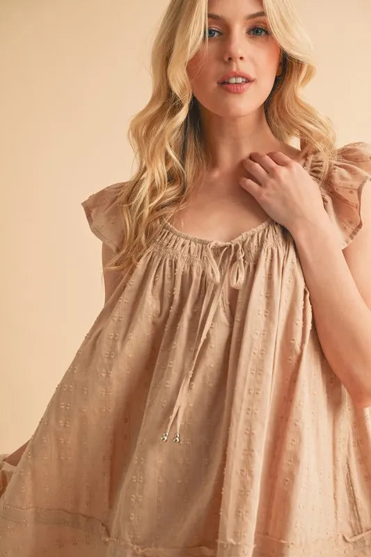 Aemi+Co Ruffled Cap Sleeve Cotton Tunic Mini Dress