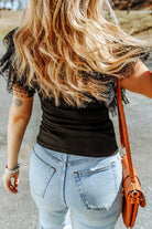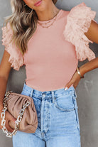 Apricot Dotty Mesh Ruffle Sleeve Ribbed Knit Top
