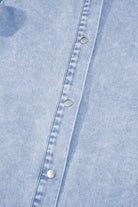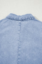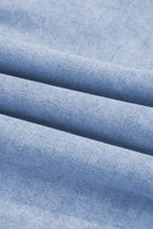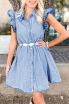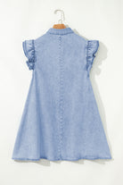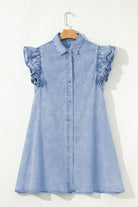 Beau Blue Double Ruffled Sleeves Buttoned A-line Collared Mini Denim Dress