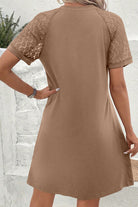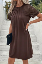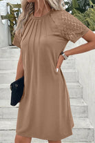 Black Contrast Lace Raglan Sleeve Pleated Detail Shift Dress