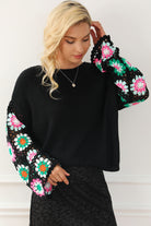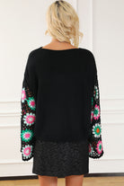 Black Floral Crochet Bell Sleeve Loose Sweater