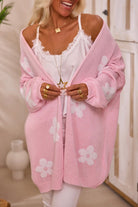 Black Floral Print Knitted Open Front Loose Cardigan