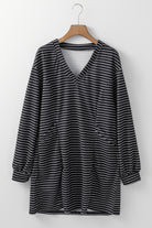 Black Striped V Neck Long Puff Sleeve Shift Dress