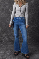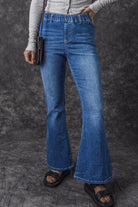 Blue Elastic High Waist Flare Jeans
