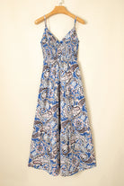 Blue Paisley Print Twist Detail Smocked Back Spaghetti Straps Long Dress