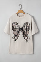 Casual Oversize Big Bow Printed Drop Shoulder Tunic Casual Tee