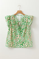 Green Abstract Leopard Tied Front Flutter Sleeve Blouse