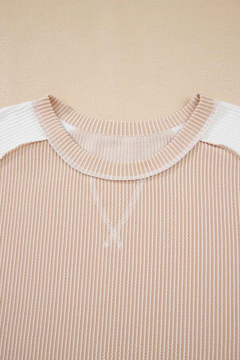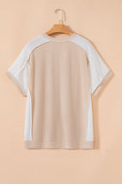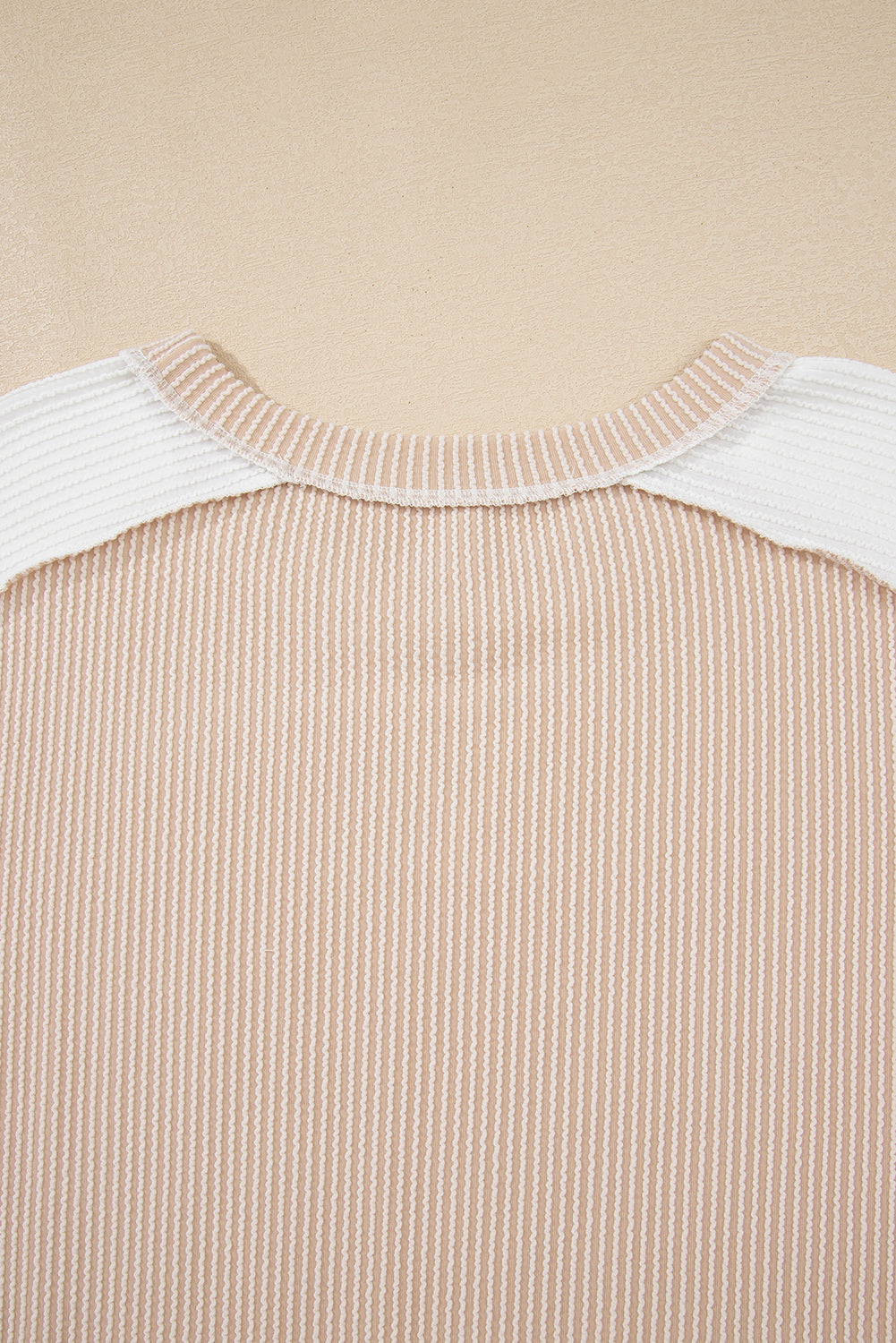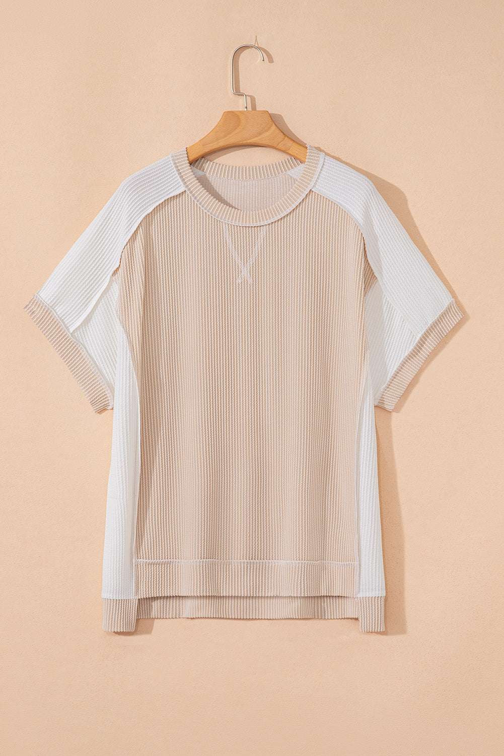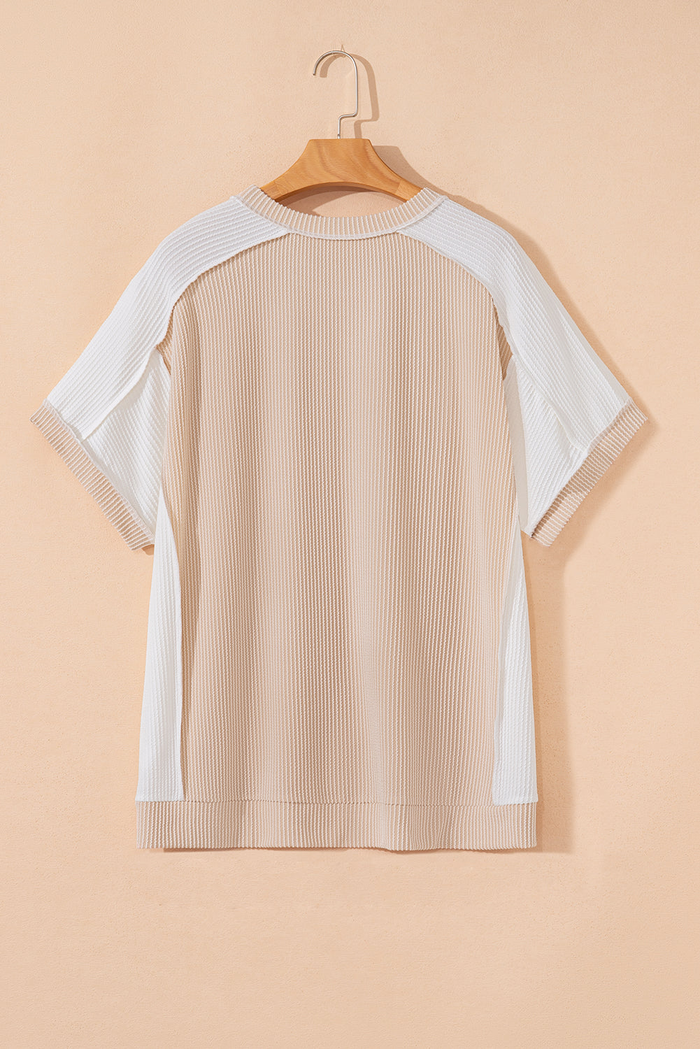 Parchment Twist Rib Colorblock Hi Low Plus Size Short Sleeve Top