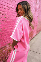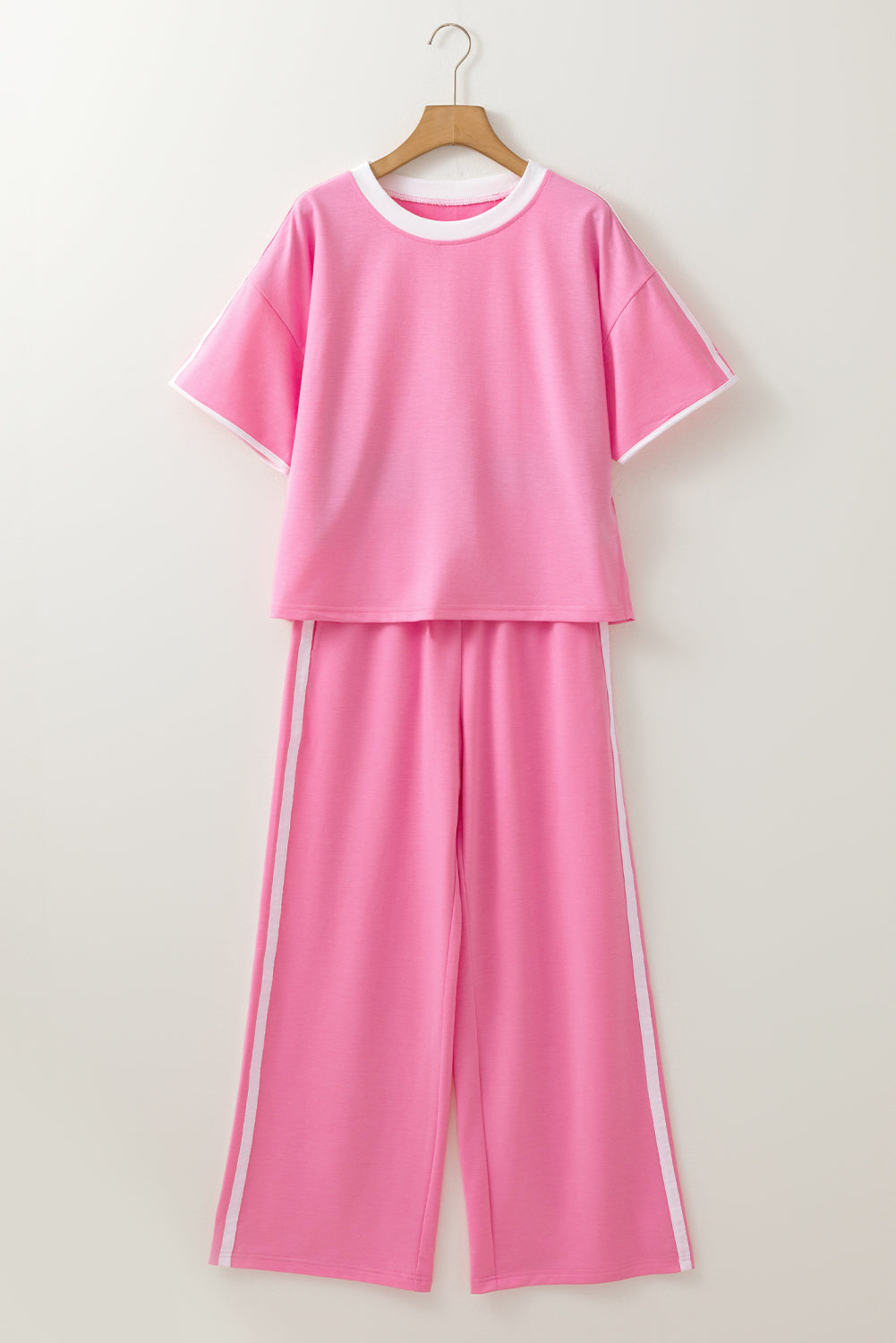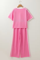 Sachet Pink Varsity Stripe Detail Casual Tee and Pants Leisure 2pcs Set