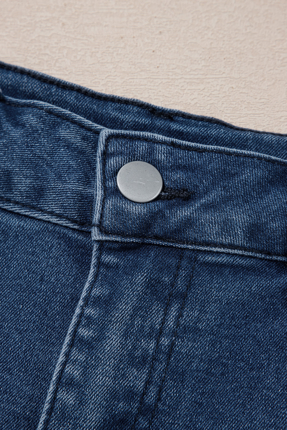 Zip fly and button closure, side and patched back pockets.