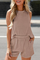 - This corded sleeveless top and pocketed shorts set is perfect for any casual occasion