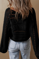 Smoke Gray Hollow-out Cable Knit Cropped Sweater