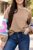 Smoke Green Flower Patchwork Raglan Sleeve Exposed Seam Oversized Top