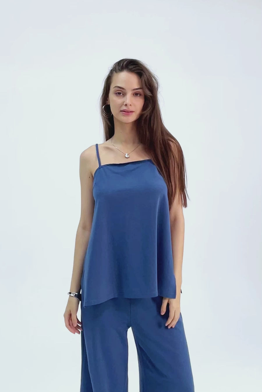 To elevate your lounge wear, consider adding a pair of trendy sandals and a statement necklace. The side-split detail of the set allows you to show off stylish footwear and accessories, turning a casual outfit into something more polished. You can also layer the set with a light jacket or cardigan for added warmth and style during cooler weather.
