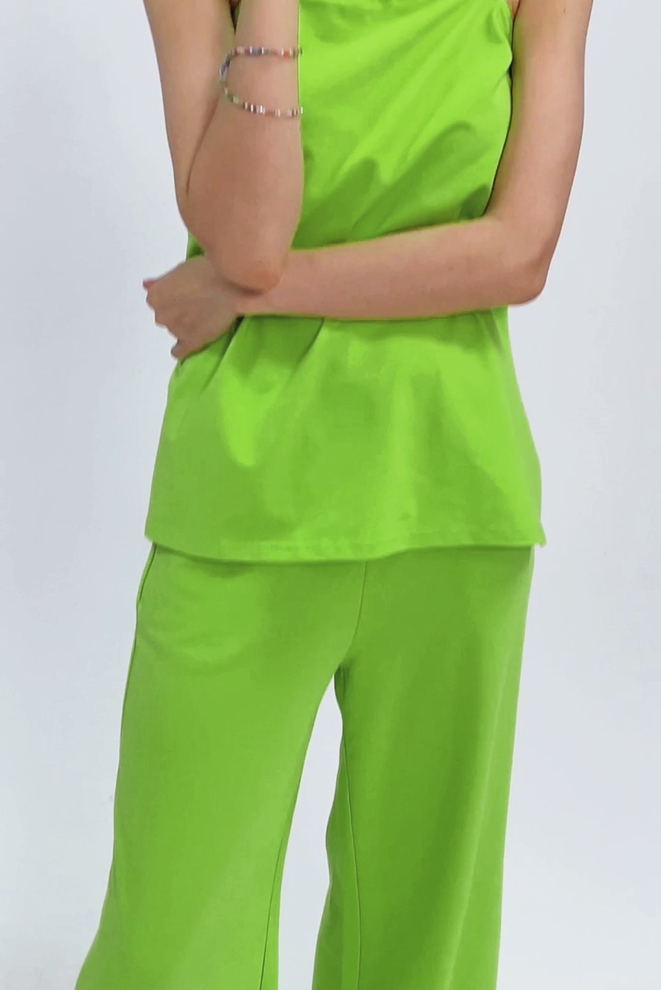 Available in a variety of colors, including Lime Green, Peach Fuzz Pink, and Lapis Blue, these sets allow you to express your personal style while enjoying the relaxed fit. The side-split design offers a trendy update to traditional lounge wear, making it a stylish choice for any casual occasion.
