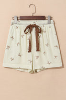 White Bow Print Lace Drawstring Casual Shorts