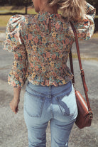 Yellow Floral Print Smocked Bubble Sleeve Ruffled Crop Top