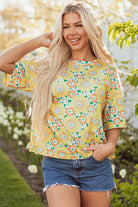 Yellow Summer Flower Printed Drop Shoulder Loose T Shirt